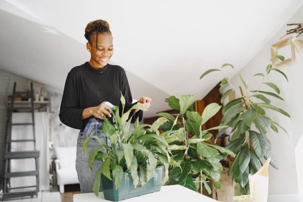 Efeutute, Bogenhanf, Glücksfeder, Grünlilie und Gummibaum sind bewährt, anpassungsfähig und genügsam. Sie tolerieren Lichtschwankungen und gießen sich nicht nachtragend. Verrate uns deine Favoriten und wir teilen erprobte Pflegeroutinen.