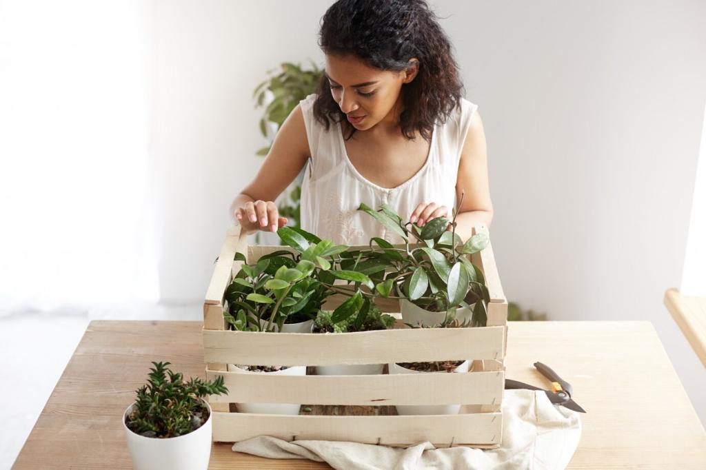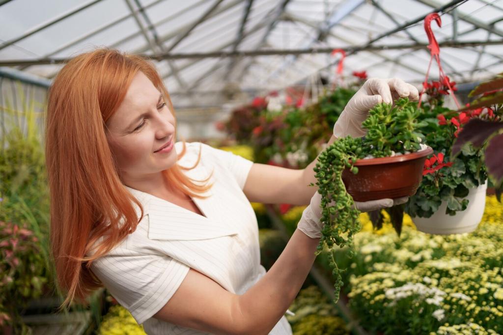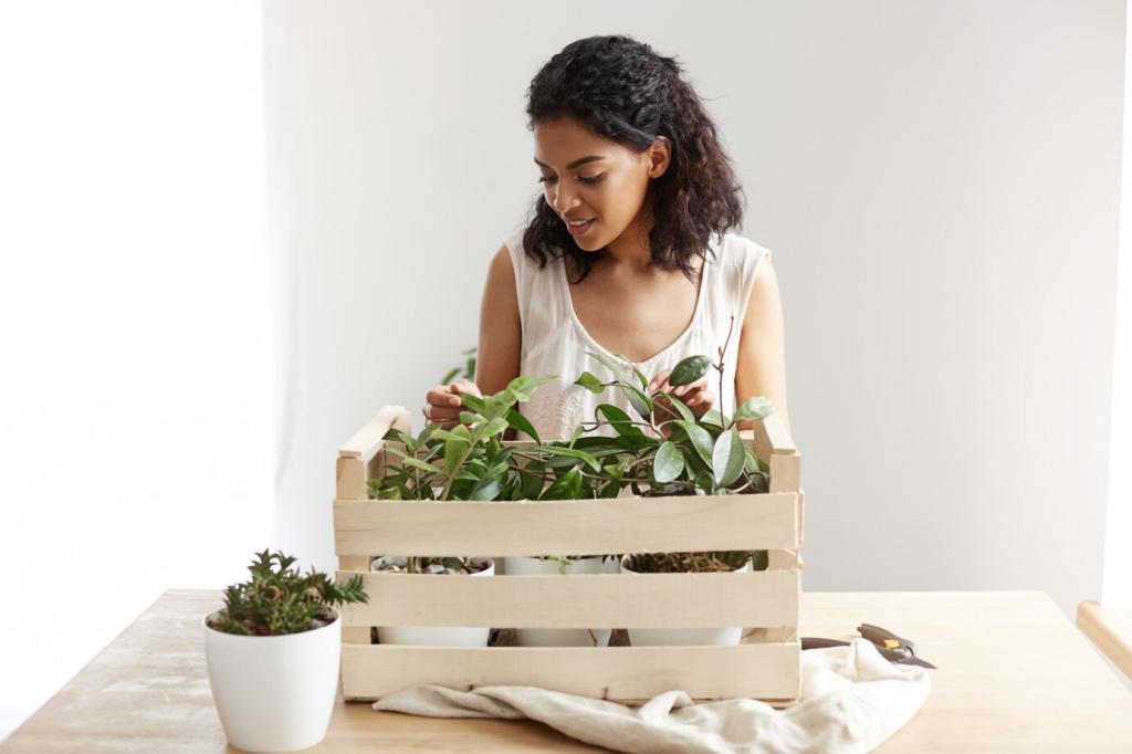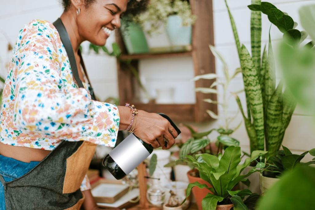 Morgens gießen senkt Verluste; seltener, dafür durchdringend, fördert tiefe Wurzeln. Beobachte Blattspannkraft als Signal. Führe eine Wochenroutine ein. Teile deinen Gießplan mit der Community und erhalte Feedback für Optimierungen.